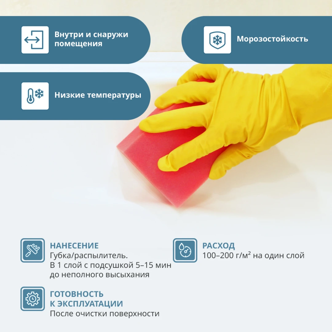 - Расход100-150г/м2 (в зависимости от типа поверхности)
