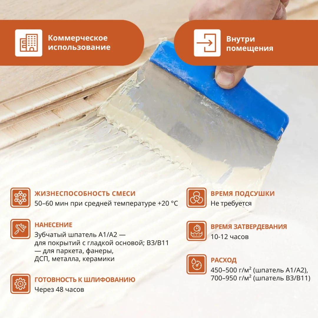 Расход450-500г/м2 (шпатель А1/А2), 700-9500г/м2 (шпатель В3/В11)