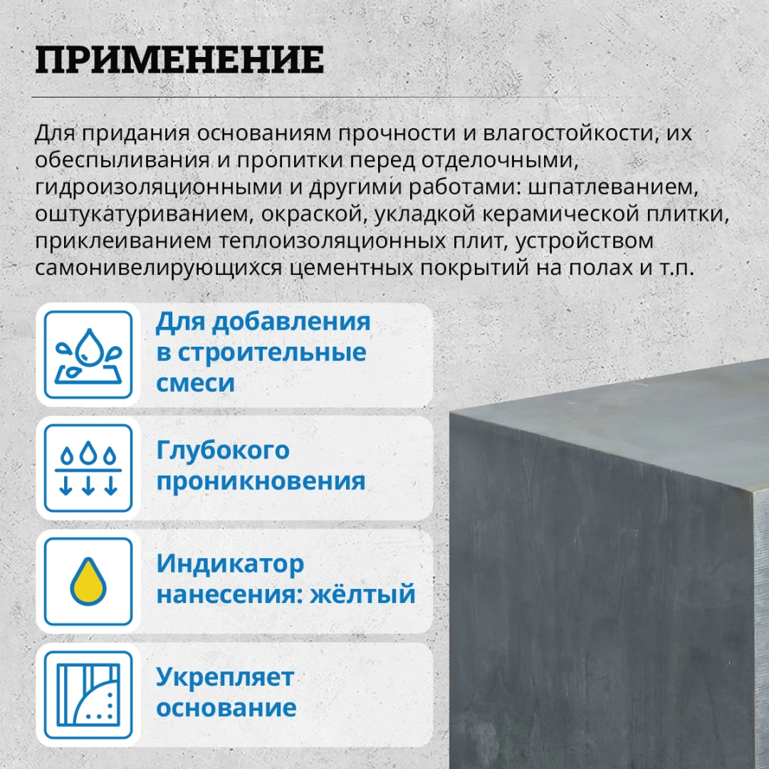 - Тип работ (Применимость)для внутренних и наружных работ