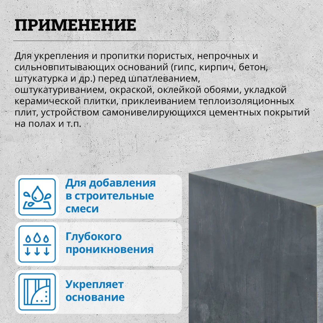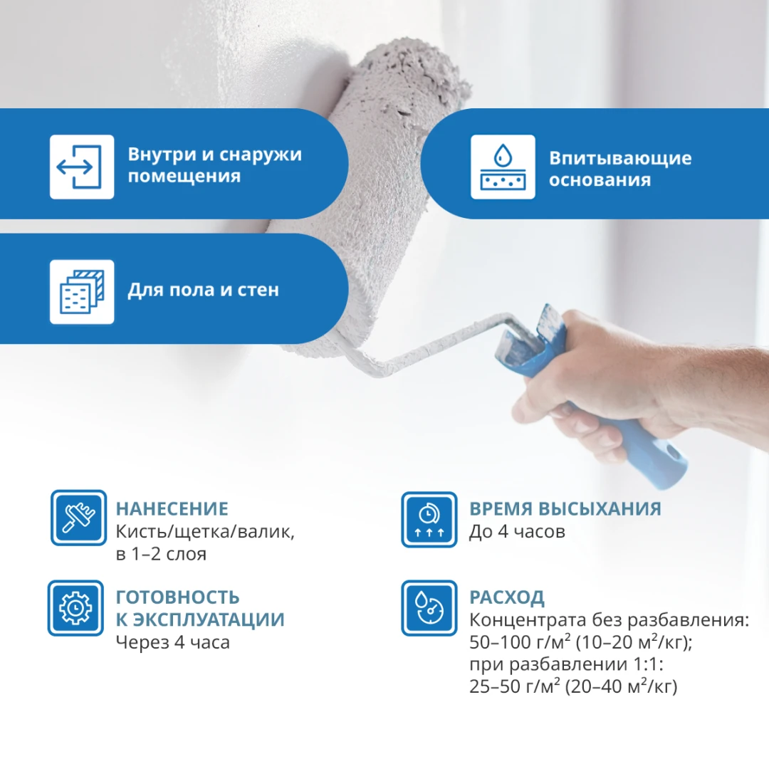- Расход50-100 г/м2 или 10-20 м2/кг