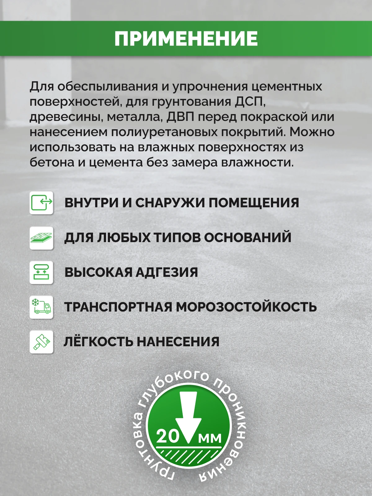 - Тип работ (Применимость)для внутренних и наружных работ
