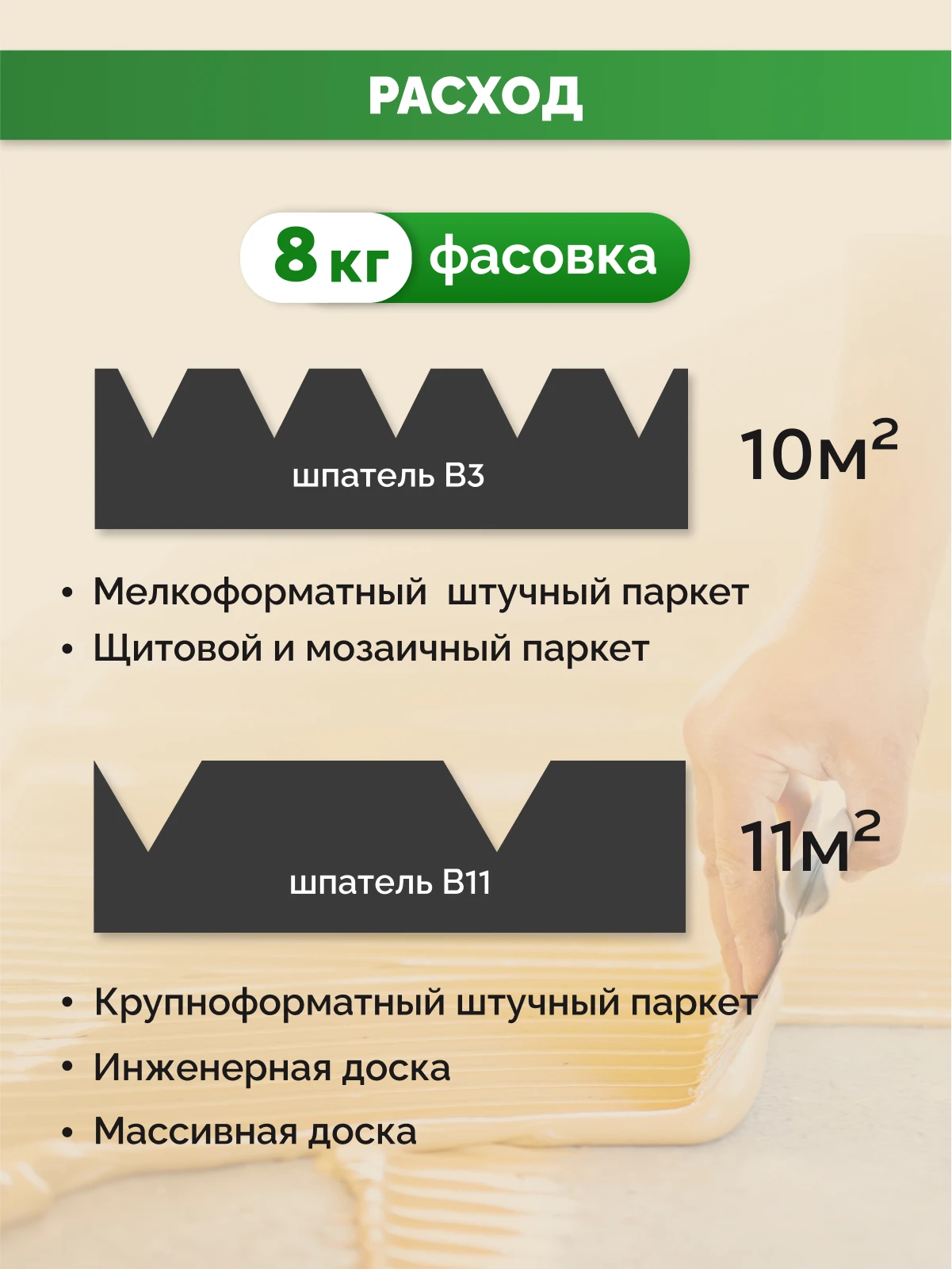 - РасходШпатель В3, В11 Расход 800-1400 г/м2