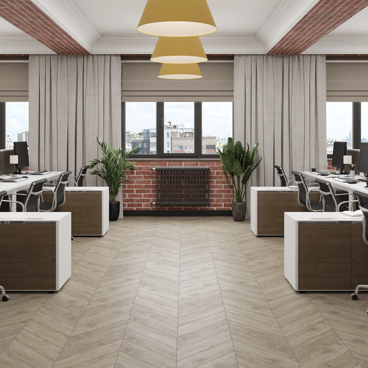 С фаской 4V: срез по всем четырём краям каждой панели создаёт V-образные канавки. Это придаёт покрытию натуральный вид доски и скрывает мелкие неровности основания. Подходит для помещений с интенсивным использованием.