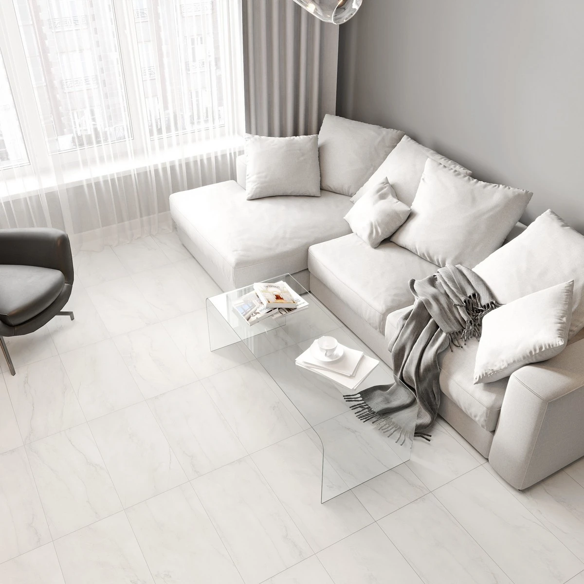 - белая кварцвиниловая плитка