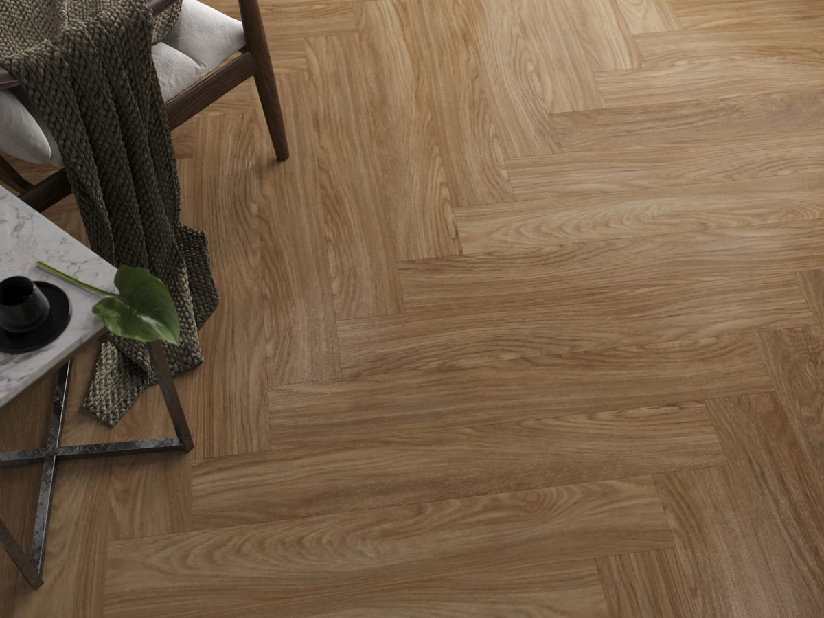 С фаской 4V: срез по всем четырём краям каждой панели создаёт V-образные канавки. Это придаёт покрытию натуральный вид доски и скрывает мелкие неровности основания. Подходит для помещений с интенсивным использованием.