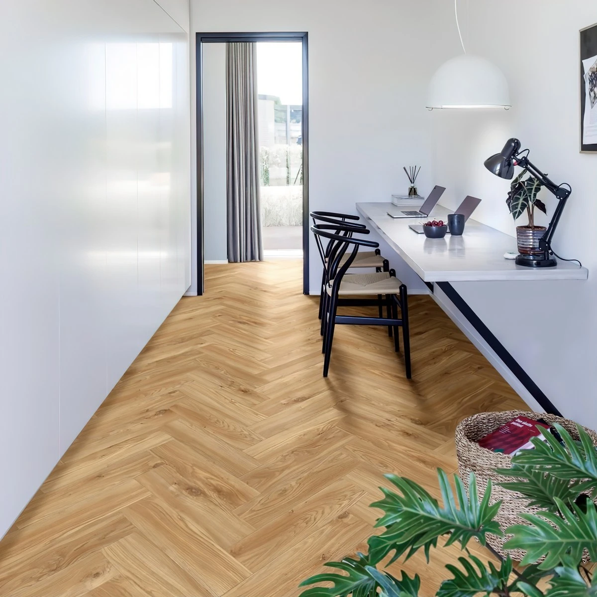 С фаской 4V: срез по всем четырём краям каждой панели создаёт V-образные канавки. Это придаёт покрытию натуральный вид доски и скрывает мелкие неровности основания. Подходит для помещений с интенсивным использованием.