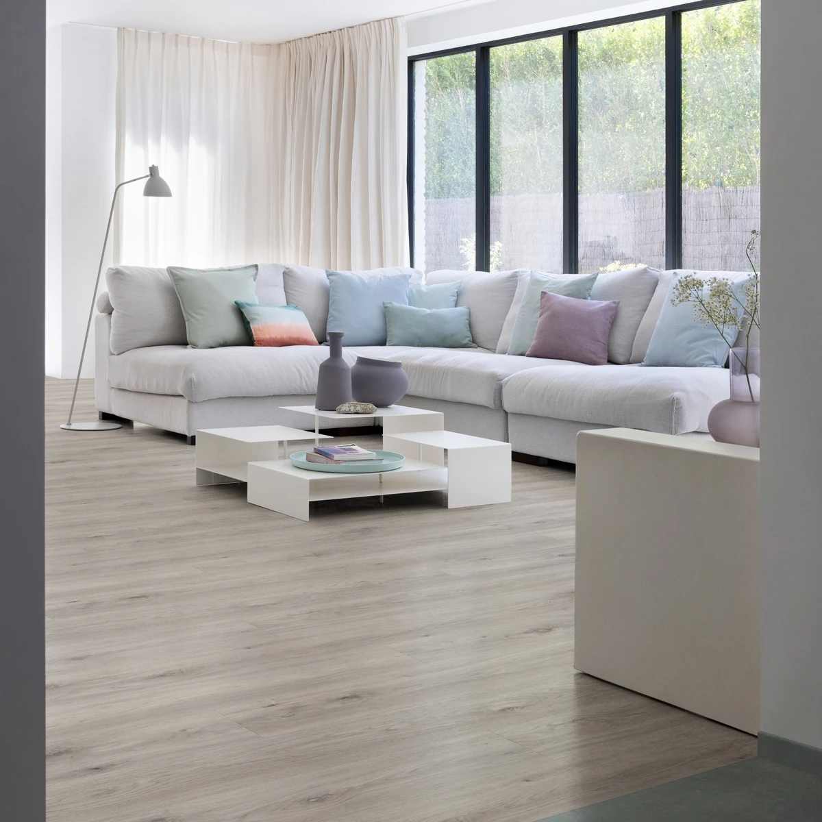 - белая кварцвиниловая плитка