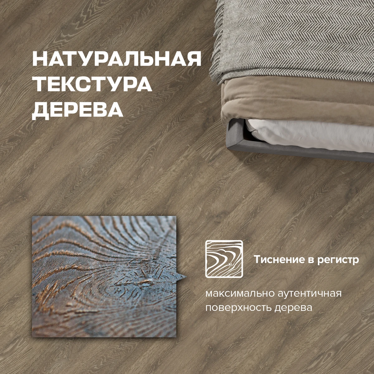 Без фаски: панели плотно прилегают друг к другу, создавая ровную поверхность без видимых швов. Идеально подходит для современных интерьеров, придавая полу однородный вид.