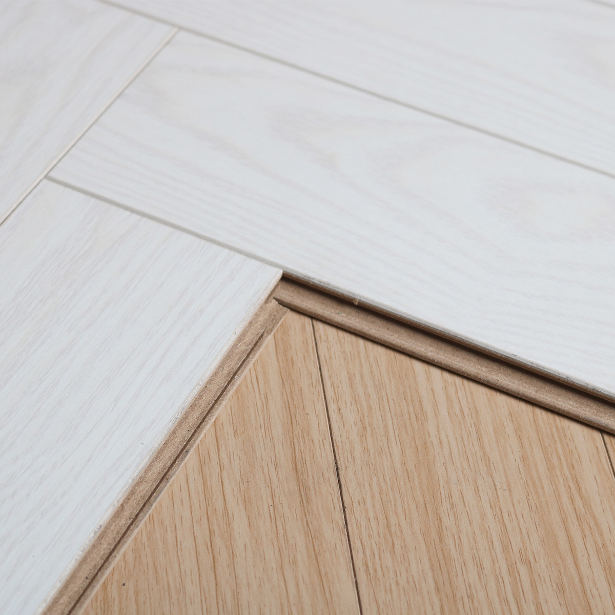 С фаской 4V: срез по всем четырём краям каждой панели создаёт V-образные канавки. Это придаёт покрытию натуральный вид доски и скрывает мелкие неровности основания. Подходит для помещений с интенсивным использованием.