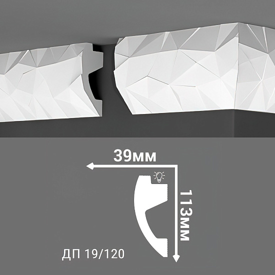 00-00001077 Плинтус потолочный Де-Багет ДП19/120 (2000*113*39 мм)