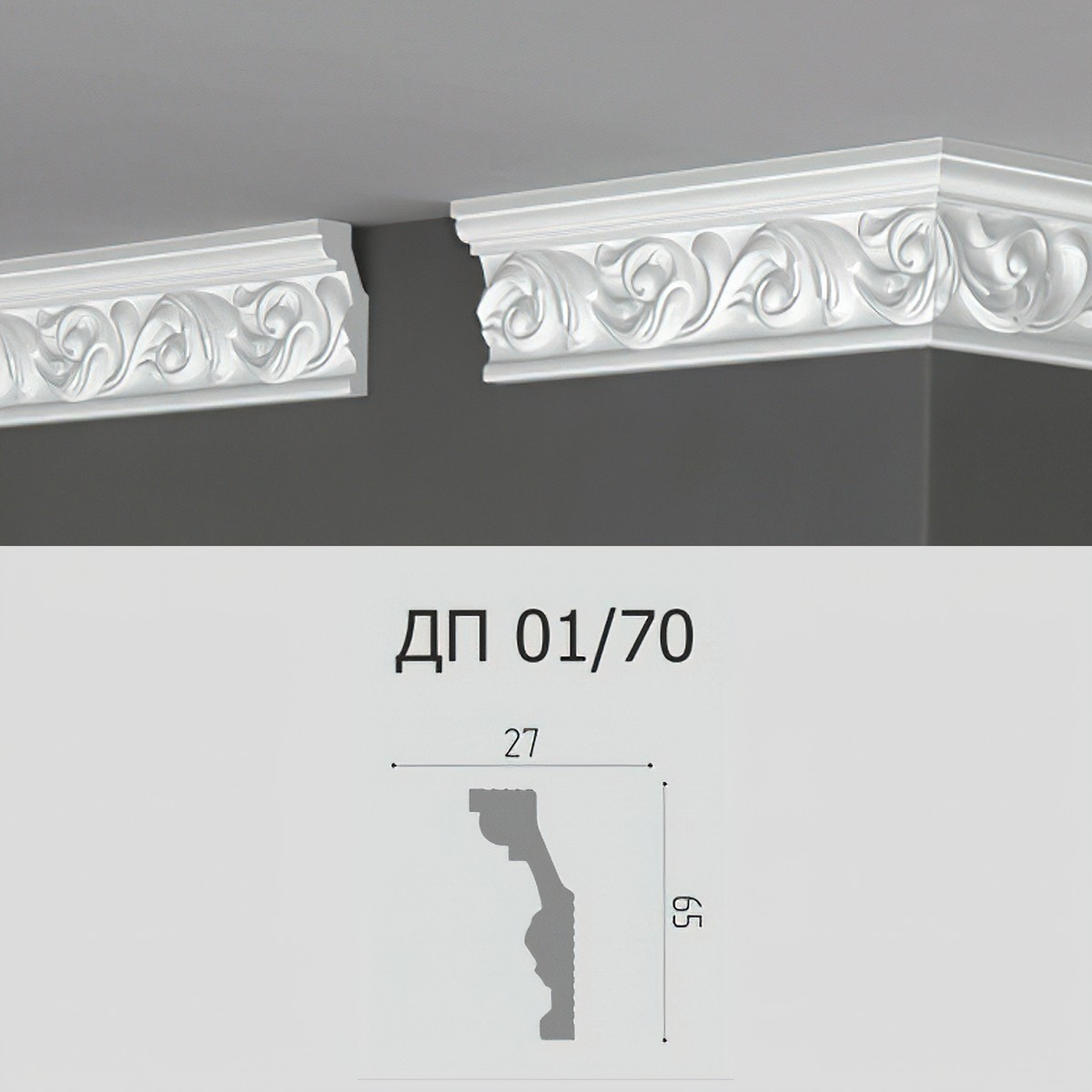 00-00001010 Плинтус потолочный Де-Багет ДП01/70 (2000*65*27 мм)