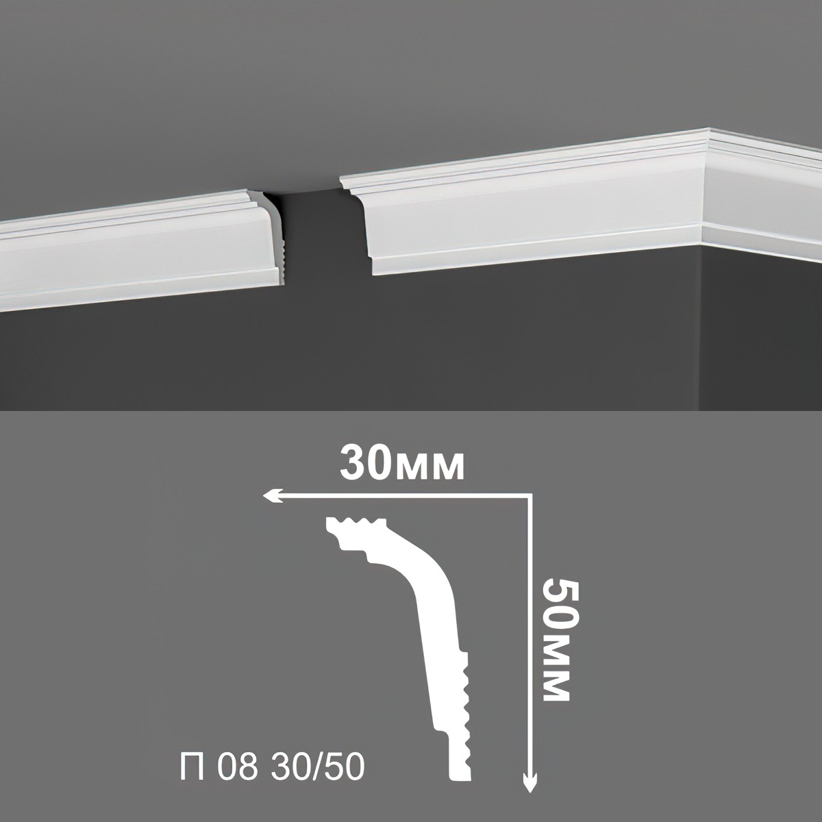 УТ000001199 Плинтус потолочный Де-Багет П08-30/50 (2000*50*30 мм)