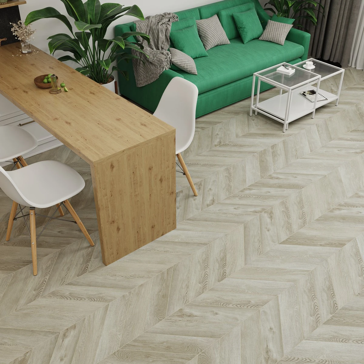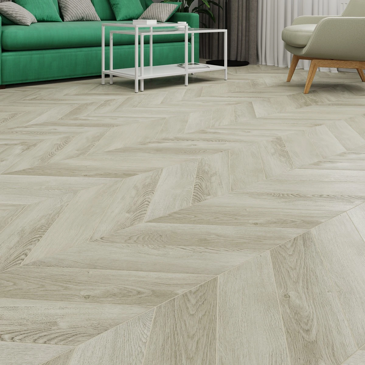 С фаской 4V: срез по всем четырём краям каждой панели создаёт V-образные канавки. Это придаёт покрытию натуральный вид доски и скрывает мелкие неровности основания. Подходит для помещений с интенсивным использованием.